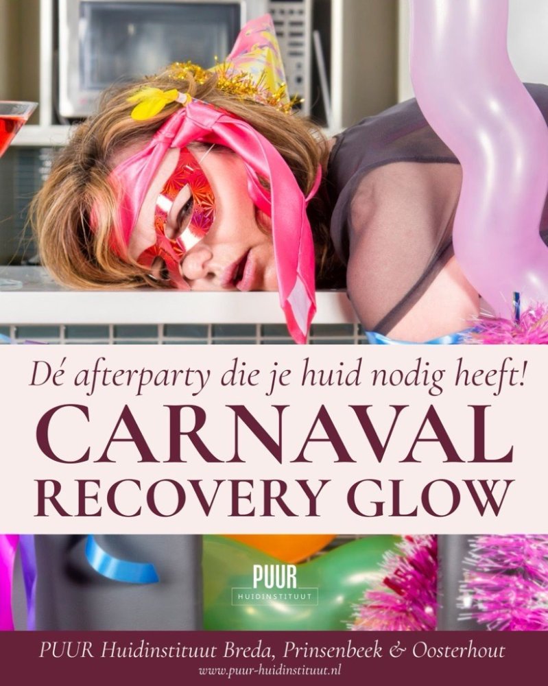Na alle schmink, make-up en carnavalspret verdient je huid een welverdiende oppepper. De Carnaval Recovery Glow Treat is dé perfecte behandeling om je huid te herstellen, te laten stralen en weer in balans te brengen. Ideaal bij een vermoeide, doffe of uitgedroogde huid.